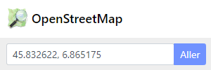• Dans la zone de recherche, entrer les coordonnées du point recherché sous la forme : Latitude décimale, Longitude décimale.